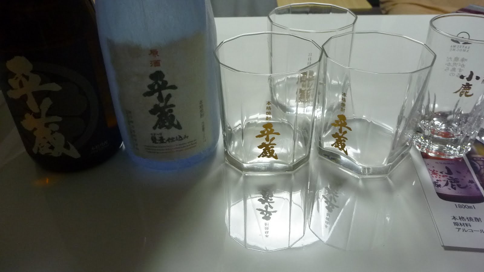 右の「小鹿」のグラスは直売をしていない鹿児島の蔵でもらったもの
